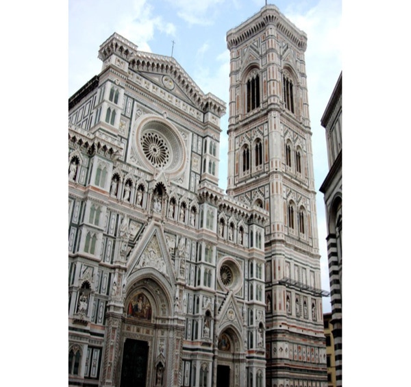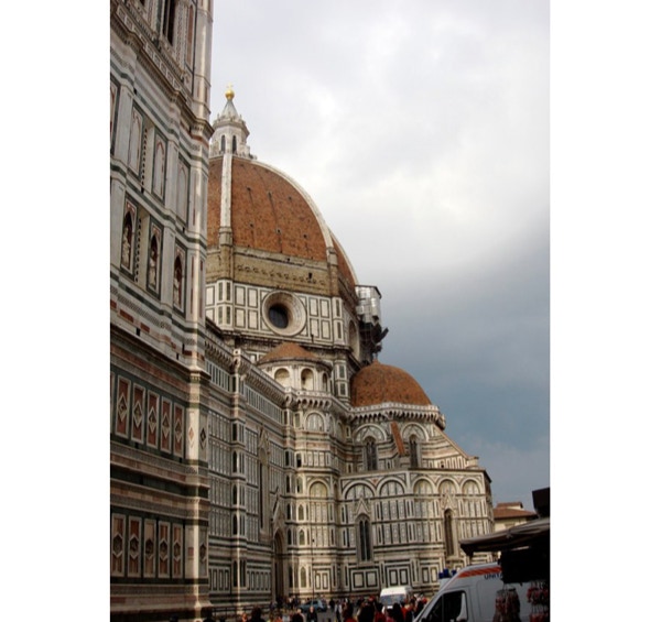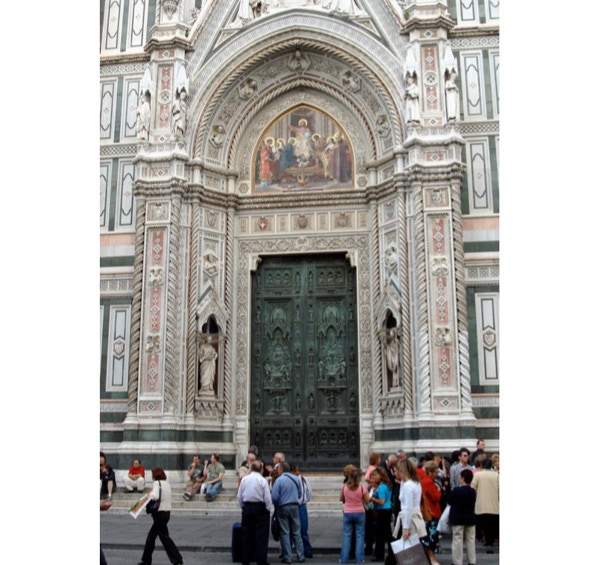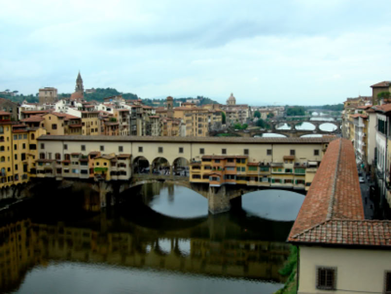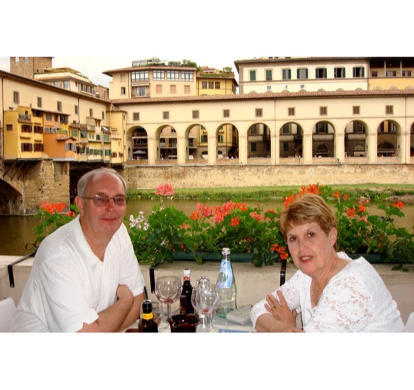 Before leaving for Florence we visited Il Cimitero Monumentale in Milan. It is a cemetery like no other we’ve seen, with sculptures of those buried there, as well as grim reapers, grieving widows, children and soldiers. Some of the family tombs were at least as tall as a five story building. We’ve added photos of this cemetery to the Milan section of the blog. On Thursday, May 15th, we took the 1:00 PM train from Milan to Florence. The train ride was wonderful; no security or luggage hassles, on time and a pretty ride through the countryside. Our hotel is a short walk from the train station. Florence is quite a contrast to Milan, as there are many more tourists and most are on foot, as the city is compact and easy to navigate (no subways to confuse us). There are as many bicyclists and motorcyclists as there were in Milan, so you have to watch for them as well as cars. We left the hotel and walked to see the Duomo, then on to the Arno River and the Ponte Vecchio, the famous bridge with shops on both sides. We had gelato near the duomo, and later a wonderful dinner at the Trattoria Za Za near our hotel. We had reservations on Friday (made months ago) for the famous Uffizi Gallery. It has the largest collection of Italian paintings in the world. We left the Uffizi and went to the Pitti Palace and Boboli Gardens across the river. The view of Florence from the gardens was beautiful. From here we went to lunch at the Golden View Open Bar, and sat at a table overlooking Ponte Vecchio and the river. The waitress took our picture there. We relaxed (translation: napped: 8 miles of walking a day is wearing us out) at our hotel in the afternoon and had dinner nearby later at the Trattoria 13 Gobbi (13 Hunchbacks). We didn’t see a single hunchback, but the restaurant was full of locals who seemed to be holding court. We haven’t had a bad meal in Italy yet. We were both feeling under the weather on Saturday, May 17th. We decided to keep our reservation at the Accademia, as it was our only chance to see Michelangelo’s David and his unfinished Prisoners. We spent quite a bit of time in our hotel room just resting, but did go out to see the nearby church, Santa Maria Novella. We went to the 5:00 PM mass at the Duomo, which was in English and about 35 minutes long. The most interesting thing about the Duomo is that the technology for the dome didn’t exist when they built the church, so they just left a big hole in the center. Soon a local architect named Filippo Brunelleschi designed the magnificent dome, which was the first Renaissance dome and was copied by other churches. We did not consider climbing to the roof of the Duomo, as there is no lift, only 463 steps. After mass we had a gelato, then walked along the river until it was time for our reservation for dinner at Trattoria Nella. We had steak (yes, they have great steaks in Italy) and panna cotta for dessert. We only walked 6.62 miles today.