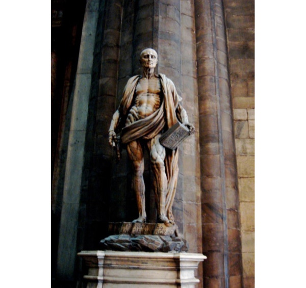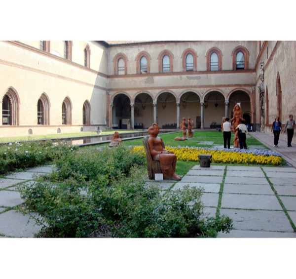 We had a good night’s sleep and got an early start for a full day of sightseeing on Wednesday. We began with a city tour, where we saw the Sforza Castle, the Church of Santa Maria delle Grazie (the Last Supper), the La Scala Opera House and the Galleria shopping center. The Last Supper was most impressive. They allow 25 people max. in the room for 15 minutes. No photography of any kind is allowed. In 1999 a 21 year restoration of the painting was completed. They removed 500 years of touch-ups. The restored painting is pale but is thought to accurately represent what da Vinci first painted. After the tour, we had lunch in a restaurant on the top floor of a shopping center that overlooks the Duomo. We then took the lift to the roof of the Duomo where we had some amazing views of its hundreds of statues and spires. We then set off to find Leonardo’s Horse, which is by a racetrack some distance from the city center. The subway was a challenge again, as we were headed off on another route. We had a long walk after leaving the subway station, but we did find the horse! It is actually a reconstruction of da Vinci’s original, as the French used it for target practice in 1499 and ruined it. It is an enormous statue, as you can see by how small Jay looks standing by it. We went back to the city center where we had salad, pasta and wine at an outdoor cafe. We then took the subway home. We wore our pedometers today and walked 8.33 miles (19,554 steps for Barbara). Yikes! Found out at our hotel a while ago that a bidet works great for soaking tired feet.