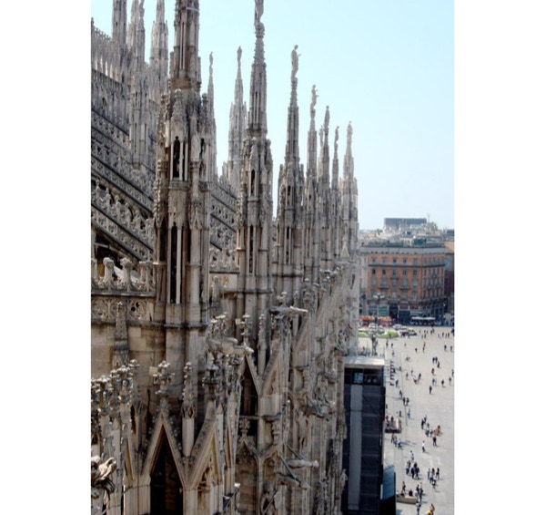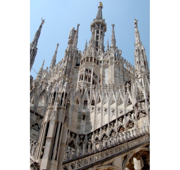 We arrived in Milan about 9:30 AM on Tuesday, May 13th. The hotel we chose, the Berna, is within walking distance of the train and subway stations. We were very tired, as we didn’t sleep much on the plane overnight, but after getting settled in our hotel, we decided to take the subway to the city center. The subway station is an adventure, as the routes are poorly marked, so we wandered around a bit before finding our way. We found that with Rick Steves’ Italy 2008 guidebook and the help of some kind Italians, you can find your way around a new city pretty quickly. We had our first gelato near the Duomo and have decided that we could try two flavors a day and still not exhaust all the possibilities while we are in Italy. We returned to our hotel and had pizza and beer for dinner in an outdoor cafe.