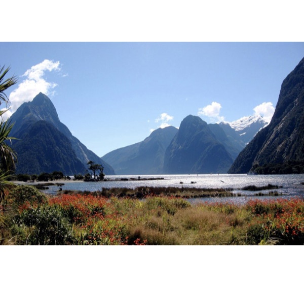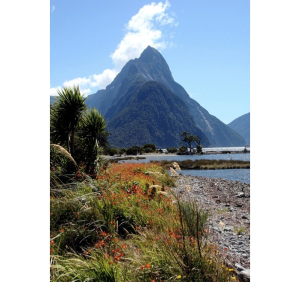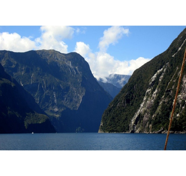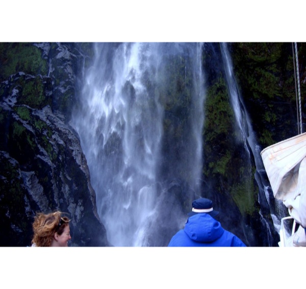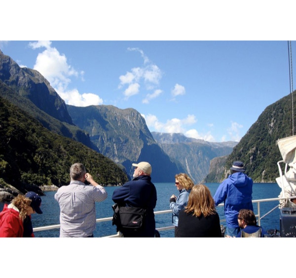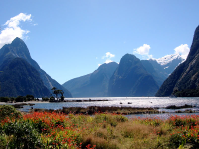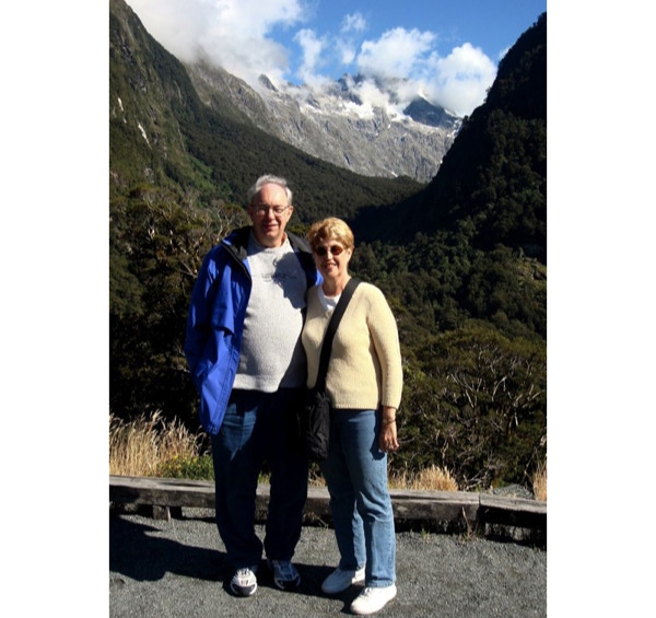 We left Christchurch mid-morning on Tuesday, February 20th and drove Hwy. 1 south to Dunedin. The roads seem wider in the South Island, or maybe we’re just getting used to them. It seems natural to be driving on the left, and the roads are straighter and faster than they were on the North Island. We stopped north of Dunedin to see the Moeraki Boulders, some unusual spherical rocks. We arrived at Larnach Castle about 4:30, checked in and took a tour of the castle. Guests stay at Larnach Lodge nearby as there are no accommodations in the castle itself. This castle, the only one in New Zealand, is located on the Otago Peninsula and is beautifully landscaped. We climbed to the top of the castle tower to take pictures of the spectacular views of the peninsula. Dinner in the castle is offered to guests, so we joined 14 others at a large table in the music room (Jay had venison, Barbara had salmon). Jay asked a man from Sydney opposite him about cricket, which is the only sporting event we’ve seen on NZ television. The fellow launched into an explanation of cricket that went on for a long time. After about 20 minutes, the lady on Barbara’s left, from Melbourne, said “Is he still talking cricket? Just ignore him.” Jay has a better understanding of the game now, but Barbara is still confused (maybe it was the wine she had with dinner). Jay took a picture of a gorgeous sunrise from Larnach Lodge on Wednesday, February 21st. After breakfast, we drove to the top of the Otago peninsula, where we stopped at the Royal Albatross Centre at Taiaroa Head. We didn’t have time for a tour here, but we did go on a Natures Wonders tour on a private farm nearby. We rode around on an 8-wheel vehicle up and down steep, rough paths to the ocean and back. We saw fur seals, very rare yellow-eyed penguins and also little blue penguins. We then drove into the city of Dunedin and walked around the attractive college town. The Dunedin Railway Station, opened in 1906, is a beautiful building with a lot of architectural detail. The city also has an interesting area called The Octagon, which is a popular gathering place. We left Dunedin around 2:30 and drove to Cromwell. The landscaped changed a lot in this three hour drive, from sheep and cattle near Dunedin, then fruit orchards, then vineyards a little further on. Our hosts at the B & B we stayed at in Cromwell, Helen and Neville, recommended a restaurant called The Lazy Dog that was very nice. The restaurant was next to a winery in a very scenic place. We’ve been drinking a lot of wine, but haven’t been on any winery tours yet. We plan to do that later in the trip. We had another warm sunny day on Thursday, February 22nd for our drive from Cromwell to Te Anau. Shortly after leaving Cromwell, we saw bungy jumping at Kawarau Bridge and stopped to watch. No,we weren’t even tempted. The sign said this was the first bungy jumping location in the world. We then went to Arrowtown, a former boom town when gold was discovered in the area in 1862. Arrowtown is well-preserved but very touristy, so we drove to Millbrook Golf Course nearby for lunch. We then followed Hwy. 6 south along Lake Wakatipu and were in the mountains known as the Remarkables. We saw several farms near Te Anau where they raise deer. We arrived in Te Anau and checked into the Green Cottage at The Croft B & B. It’s a beautiful spot with views of the mountains and Lake Te Anau, the largest lake in the South Island at 38 miles long and 1,370 feet deep. This evening we went to the cinema in Te Anau and saw an amazing short movie about Fiordland that had been recommended by our B & B host in Picton. We enjoyed it so much we bought a copy of the DVD. Friday, February 23rd, a day we have anticipated since we made our plans many months ago, finally arrived. We went to Milford Sound today. We were not disappointed! We arranged to go in a large van with 10 other people so we could just enjoy the drive there and not miss the best places to stop along the way. We walked through an amazing forest at the Lake Gunn Nature walk, where the forest floor was green with lichens and moss. The driver stopped at Hollyford Valley and took pictures of us. We also saw a green river and some great waterfalls on the way. We arrived at Milford Sound (which is actually a fiord and not a sound) and got on a good-sized boat for a 2 1/2 hour cruise of the fiord. The mountains and waterfalls were just incredible and we got right under two waterfalls. There hasn’t been as much rain as usual in the past few weeks, so the waterfalls weren’t as spectacular we’ve heard they can be, but we were happy to have a sunny day with a great blue sky. To get a perspective of just how big the mountains are, look at the picture with the boats that look like two tiny specks on the water. When we arrived back in Te Anau, we checked into Kepler Cottage , the B & B where we spent the night.