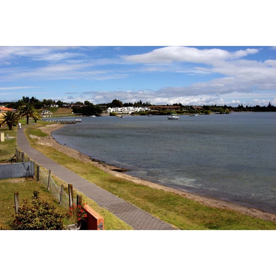 Before leaving Wanganui on Sunday morning, February 11th, we went to the top of Durie Hill, where we took photos of Wanganui and river of the same name. We were able to see Mt. Ruapehu in the distance (the one we couldn’t see because of rain yesterday). The mountain is about 100 km from Wanganui. We then drove into the Egmont National Park, where we saw Dawson Falls. Mt. Egmont was totally covered in clouds. We traveled south and drove west on Surf Highway 45, which goes around Mt. Egmont in a large half circle. We stopped to see beaches at Opunake (Mt. Egmont was partially visible there) and also beaches at Oakura. We arrived in New Plymouth and checked into our B & B. It was called 93 By The Sea and had views of the Tasman Sea and also beautiful gardens just off the breakfast area. We took a long walk along the Foreshore Coastal Walkway and saw an interesting thing called a Wind Wand that bends to show the wind direction. After dinner we went to Pukekura Park and Brooklands Park. There we saw a special light display that used colored lights and laser lights. The view of Mt. Egmont from the tea house was very nice and the parks were pretty. On Monday, the 12th, after an interesting conversation at breakfast with our host Pat about U.S. politics, we drove from New Plymouth to Waitomo Caves. These are limestone caves with glowworms unique to New Zealand that can be seen hanging from the ceilings of the caves. They didn’t allow any photos of the glowworms, so we bought a postcard and will have to add it to our photos when we get home. After our cave visit, we drove to Lake Taupo, where we spent the night at a lodge right on the lake. We had a nice dip in the outdoor thermal pool at the lodge. The temp was about 35 degrees C, so about 100 F. It was very relaxing. We received an email from Constable Rhys Dempster concerning the bus that hit us at the Waitangi Treaty Grounds. They could not locate the bus (no surprise). He said he “hoped our holiday had improved.” We’ll have to deal with it when we return the rental car in Auckland at the end of our travels in New Zealand. Tuesday, February 13th was a beautiful, sunny day. We left Taupo early to go to the Tongariro National Park to see the mountains. There are three: Mt. Tongariro at 6,457 ft., Mt. Ngauruhoe (Mt. Doom in LOTR) at 7,516 ft. and Mt. Ruapehu at 9,176 ft. This volcanic plateau was the site that depicted Mordor in LOTR. We rode up two chair lifts at the ski area on Mt. Ruapehu and had a snack at New Zealand’s highest cafe, the Knoll Ridge Cafe at 6,627 ft. We then drove to Levin, where we are spending the night at a B & B.