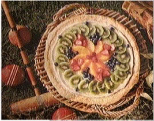 Crust Pat to edge of pizza pan. Bake 15-20 minutes at 350°. Cool before adding cream cheese. Filling Cream together and spread with spatula over cooled crust. Fruit Arrange fruit over filling. Glaze Cook slowly, stir until thick and clear. Cool. Spoon over fruit. Chill about 2 hours before serving.