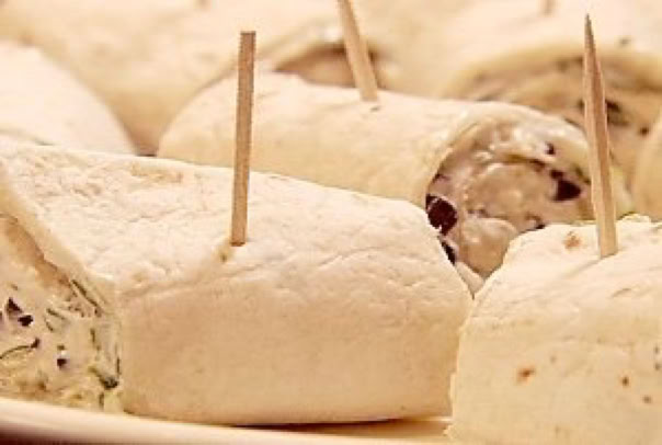 In a large bowl, beat cream cheese until creamy. Then add sour cream, green chiles, olives, pepper jack cheese, salsa, and onion tops. Beat at medium speed with an electric mixer. Stir in spinach. Spread mixture evenly over the surface of each tortilla. Roll up tortillas tightly and cut each tortilla crosswise into 6 slices. Skewer each wrap with a wooden toothpick. Serve immediately or chill. Serve with salsa for dipping, if desired.