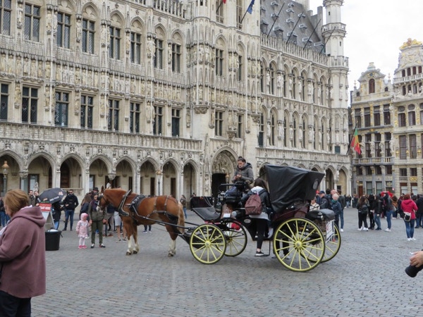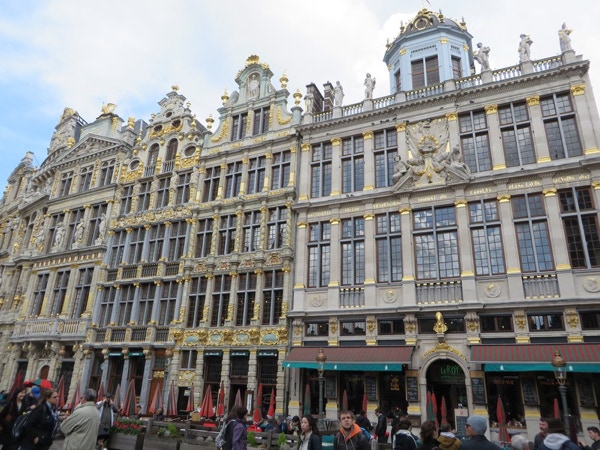 We went out this morning to find an ATM and the Chicago Cafe for breakfast. We found the ATM okay, but had to stop and ask for directions to the cafe at a hotel. Barbara missed a step and fell in the hotel after the desk person helped us but she didn’t seem to hurt anything. Perhaps it was a good reminder to watch more carefully, as it’s better to fall on a carpet than a cobblestone street. We didn’t know when we booked the room for Brussels that today, our only full day in Brussels, was a public holiday (Labour Day) and many places wouldn't be open. We walked to Central Station where the hop-on, hop-off bus route begins. First we did the red line, and as we had the front seats in the upper level, we didn’t get off at any stops. We were given earbuds to listen to the commentary, which was available in 8 languages. This is a city where many residents are multilingual. Before we started on the blue line, we walked back toward Grand Place and found a WC where we paid .50 euros each to pee. We got off the blue line on stop 4, which was the Atomium. This unusual structure was built for the 1958 World’s Fair but is now a museum. The ticket lines were very long as the site was incredibly crowded. We just took time to take a few pictures and then hopped back on the next bus. Many of the pictures below aren’t great, but not bad considering that many were taken from the bus. We went to the Grand Place twice on foot. It has a complicated history, first constructed in the 1400s but destroyed and rebuilt a few times. It’s a UNESCO World Heritage Site and is considered one of the most beautiful squares in Europe. This old part of the city is only a few blocks from the modern city with steel and glass buildings. Brussels is home to the headquarters of the European Union and European Commission, as well as being the capitol of Belgium. The EU just moved into a new building about 18 months ago that features a glass box that looks like a glowing lantern. The audio commentary for the bus ride said there are 5,000 diplomats living in Brussels. Some other facts about Brussels: 1) Karl Marx lived in Brussels when he wrote the Communist Manifesto. 2) Vincent Van Gogh wanted to be a preacher and came to Brussels for a 3 month trial course. He didn’t get accepted for more training, so decided a few years later that he would “follow his heart and throw himself into his artistic work.” It’s probably safe to say the world is better for his decision. 3) There are about 2,000 chocolate shops in Belgium. Today was such an improvement weather-wise, with some sunshine and gentle breezes. The city is really busy, and although the high temp today was only in the upper 50s, there were people eating and drinking at sidewalk cafes everywhere. There’s live music in front of St. Catherine’s church about a block from our hotel and the place is still rocking. We had pizza and a Belgium beer for dinner. Grimbergen is an Abbey beer that was made by monks but is now made by breweries in Belgium and France. We’re very tired tonight and our legs hurt—probably because most of the 5.5 miles we walked today was on cobblestone streets.