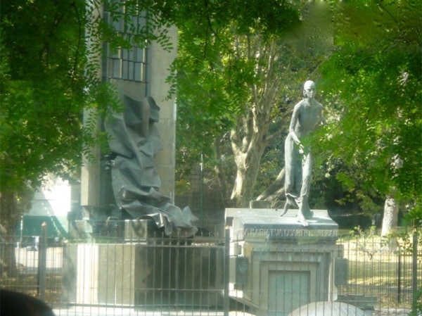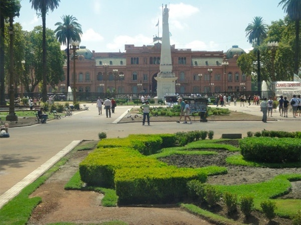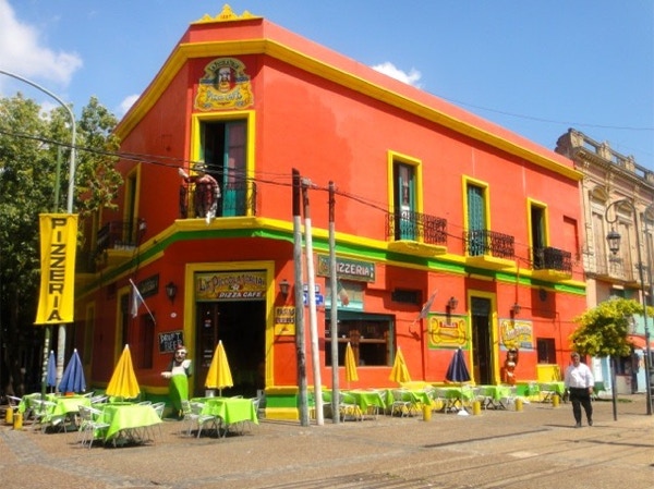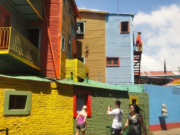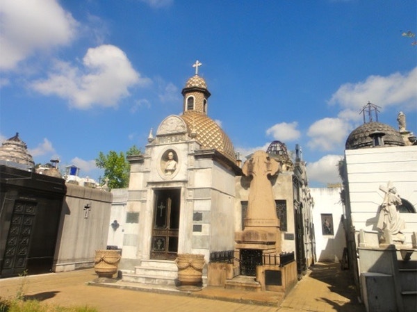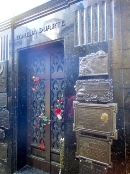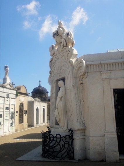 Day 18 - Monday, January 23rd - Buenos Aires: This is our first time in Argentina. They predicted rain but it turned out to be a sunny, warm day. Buenos Aires is a lot smaller than Rio and is on the Rio de la Plata. We went on a shore excursion this morning that took us first to Eva Peron's grave, which is in a mausoleum in the Recoleta Cemetery. Juan Peron is buried on the other side of the city. We spent most of the tour on the bus, and drove past the Casa Rosada Government House (Pink House) where Evita and Juan made appearances on one of the balconies. We also saw the Colon Theater Opera House and the Cathedral. Our second stop was in La Boca, a colorful community that was founded by Italians. We took a lot of pictures on Caminito Street in La Boca, where a woman dressed as a tango dancer put a hat on Jay and posed with him. We came back to the ship, had a nap and went to the Lido for the Argentinian BBQ instead of going to the dining room for dinner. Later we went into the city to see a performance of the tango, which is described as "a vertical expression of a horizontal desire." After watching the intricate moves of this dance, we would say it's a way for old people to cause harm to themselves.
