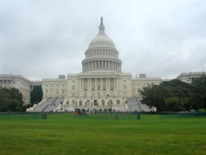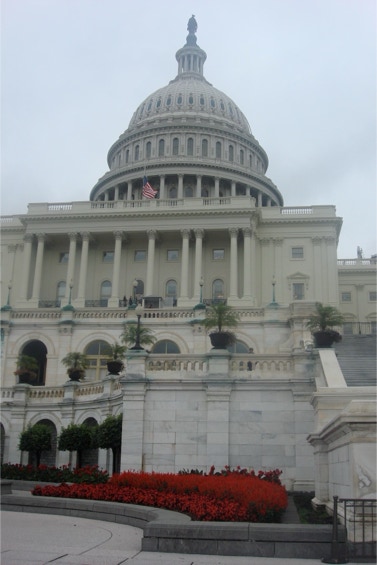 This morning we had passes for a 9:30 tour of the capitol. We took the Metro to the Capitol South station and got soaked on our two-block walk (our umbrellas are in the car). We checked in and had time for pastry and coffee in the cafeteria prior to the tour. Our clothes were pretty dry by the time the tour was over about 10:45. We walked over to the Hart Office Building (the rain had stopped) and visited Al Franken’s office, where we got passes for the House and Senate Chamber tours. The staffer was nice and let us go into Al’s office (he wasn’t there) and take pictures. Paul Wellstone’s sons gave Al their dad’s nameplate from his senate days. We walked to Amy Klobuchar’s office and signed her guest register. We went back to the capitol and toured the House and Senate Chambers. We had to go through security many times. Cameras are not allowed in the chambers--the Senate Chamber is much nicer than the House. There were no representatives in the House Chamber, but John McCain was speaking about Afghanistan in the Senate. The only people there besides the visitors were about 20 staff people. Our next stop was the U.S. Botanic Garden. We then continued down the Mall and went to the National Air and Space Museum, where we saw the Wright Flyer, The Spirit of St. Louis and the Apollo 11 capsule. We crossed the street and went to the National Gallery of Art. We stopped at the National Museum of Natural History just long enough to see the Hope diamond. Our last museum of the day was the National Museum of American History, where we saw the flag that inspired the Star Spangled Banner, the exhibit The First Ladies at the Smithsonian and Julia Child’s kitchen. On our way back to the hotel we walked by the White House. We spent a couple hours relaxing in our room, then went out for Chinese at Charlie Chiang’s. It was an interesting but tiring day. We walked over ten miles!