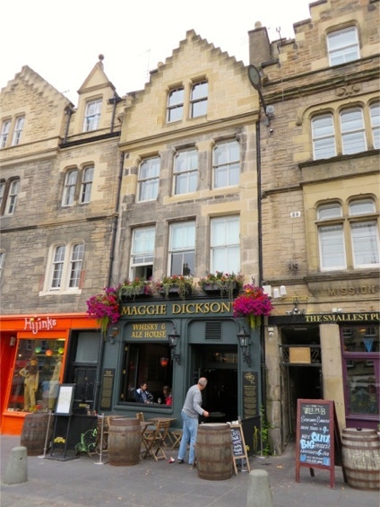 She had divorced her abusive husband and moved here because her sister lived in Edinburgh and had found her the flat. Kim told us that the term ‘shit-faced drunk’ originated here. There were very tall buildings in the city before indoor plumbing was invented, and there were certain times of day (10 pm was one) when people could empty the chamber pots out their windows. The pubs also closed at 10 pm, so some drinkers didn’t quite make it inside—you get the idea. Kim also told us the term graveyard shift came from family having to guard gravesites so robbers wouldn’t take the bodies for medical research. After the tour we walked back to Rose Street and had dinner at Rosehips. I ordered some haggis as an appetizer and surprisingly those who tried it (Gayle didn’t try it) thought it was very good. We went back to the B & B and planned tomorrow’s schedule while drinking our whiskey and some of the whiskey and cream that we bought at Edradour distillery. It’s great to have the six of us in Edinburgh safely without any bigger problems than some delayed flights for the Lyndalls and Dustruds.