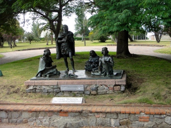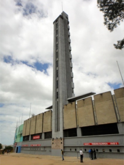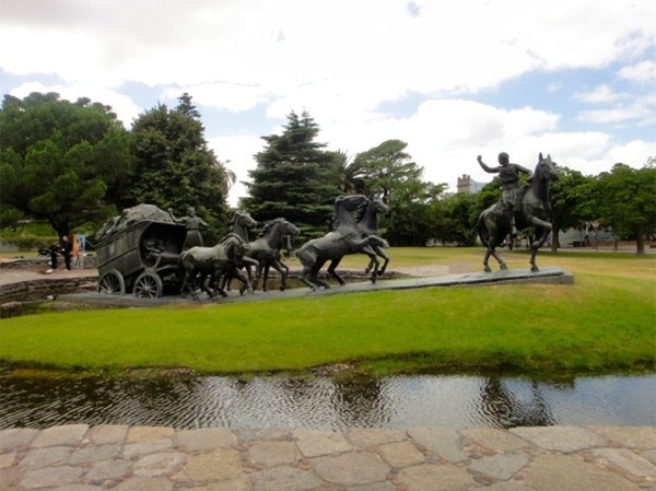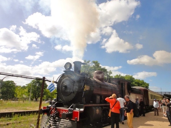 Day 20 - Wednesday, January 25th - Montevideo, Uruguay: The ship was late getting into port, as their had been a storm overnight and as a result lots of port traffic. Our tour today was by steam train and bus. The train system in Uruguay was built by the British, and the steam engine that pulled our train to the Colon station was built in 1910. The passenger cars were refurbished and quite nice. After the train ride, we saw different parts of the city by bus: the early Colonial section, the middle class section and the expensive part of the town. We made several stops to look at some sculptures, and also saw a memorial to the last five indigenous people of Uruguay belonging to theCharruas tribe. They were captured and put on a ship to Europe where they were to be displayed at the Louvre. Very sad. We stopped at a monument on the river, where we saw surfers. Our guide said the waves were high because of last night's storm and that you seldom saw surfers on the river. Uruguay is the most liberal country in South America and has an illiteracy rate of 1%. There was a lot of trash on the streets and graffiti on buildings, but we enjoyed our first visit to this country.