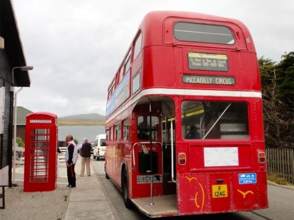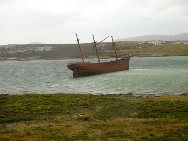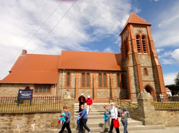 Day 23 - Saturday, January 28th - Stanley, Falkland Islands: Ships are not always able to stop at Stanley because the seas are often rough. We were very fortunate to have a nice day, temps probably in the mid 60s, although there were strong winds. We did a couple loads of laundry in the morning, as no one else was doing laundry on a day in port. We went ashore in a tender about noon and did some walking around before our double-decker bus tour in the afternoon. We stopped at the Victory Bar and thought we would have a bite to eat, but it was very crowded. The population of Stanley is about 3,000, but there were two cruise ships here today, so the population was more than doubled. The Anglican Christ Church Cathedral claims to be the southernmost cathedral in the world. There are penguins on this island, but we didn't take that tour. On the bus tour we saw the beach where the Argentine soldiers came ashore in 1982. There are numerous shipwrecks close to shore all around Stanley. It's a very expensive place to live, as they don't have any timber on the island and a lot of food has to be imported, too. There aren't many choices in transportation to get away, either, and it would be a very solitary existence. The inhabitants of the Falklands are very British, but Great Britain doesn't support them financially. It was very interesting to hear the story of the Falklands War from both sides: the Argentines blame the British and the British blame those awful Argentines. There's a memorial to the war and the nearby street is called Thatcher Drive. We stopped at a small museum before the tour ended about 4:00. The internet has been very slow until now and will probably get worse as we're cruising around Antarctica. We have no idea when we'll be able to publish again.