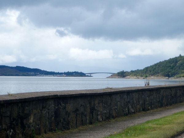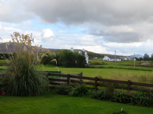 Had a good night’s sleep and a hearty breakfast at the hotel. We started on our drive to the Isle of Skye a little after 9, shortly after it started to rain. It’s about 215 miles from Glasgow to the Heatherdale B & B on the island, but it took us a little more than 6 hours. Once we got out of Glasgow the roads were very narrow and winding, especially around Loch Lomond. Jay had a steep learning curve for driving in Scotland besides sitting on the right side of the car and driving in the left lane. In addition there was rain most of the day, lots of roundabouts (especially in Glasgow) and issues with the car. We rented a Garmin from the rental car company and we got it in the mail a few days before we left. We had it plugged into the car’s electrical outlet, but when it went dead, we realized the outlet didn’t work. Next to the backup plan—a GPS on the iPhone that didn’t require wifi that Jay had added to the phone at home, and that worked but was draining the phone's battery. We stopped and bought a good road map, but didn’t need it because we found from the car’s owners manual that there was a second outlet in the rear of the car that worked. We had voice from the Garmin in the back seat but couldn’t see the map. Shortly after that problem was solved, a warning light came on and told us we had a tire (tyre) pressure problem. We had to drive some distance to find a service station with air, and all the tires had plenty of air when Jay checked. And we thought the Germans built good cars! In spite of these problems we found our destination without any wrong turns. It was only when we were trying to find the Edinbane Inn for dinner without GPS that we got lost and had to return to the B & B for better directions. The food was great—we had fish and chips and a steak burger and shared. Our ATM card and credit cards are working fine.