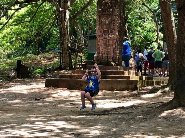 Today is the first time any of us have been in Honduras. Henry slept in and Jeff was up earlier, so the rest of us went to the American Icon for breakfast. Our tour met on the pier, so we went out early and walked around the shops near the ship. The group boarded several small buses around 11:00 and went for a 20 minute drive to the site of our Eco-Park Adventure Tour. Joseph, our bus guide, told us that the Roatan Island has a very low crime rate, while mainland Honduras is so crime-ridden that many people are trying to get to the U.S. border. Tourism is the biggest industry on Roatan Island, but the city and houses are very modest and there’s lots of trash around. Apparently there are 5-star hotels on the island but most houses do not have AC and still pay up to $200 a month for electricity. After getting off the bus we were surrounded by some very friendly White-face Capuchin monkeys. They would jump on your shoulders or head and wanted to grab sunglasses or other loose objects. Next was the butterfly house, where our park guide Jose gave us lots of info about the butterflies we were seeing. We then started walking about .2 of a mile on a path through the jungle. It was not a difficult walk but you had to watch where you were stepping. We walked across 2 suspension bridges that weren’t at all scary. There were 3 hammocks at the rest place where we saw some native critters, including spider monkeys and white-tail deer. We were told that iguana meat was a menu item here but we didn't stop to eat. We got back to the ship and went to the Windjammer for lunch. Anne, Chris, Jay and Barbara played general trivia at 5:00 and had a respectable score (13 of 15 right answers, but the winning team had 14). If we had known the inventor of the flush toilet was Sir Thomas Crapper (not James) we would have tied the winners. At 7:30 we went to see the Ice Games, which were on the ice rink in Studio B. The costumes were colorful as was the lighting. It was pretty impressive that they were able to do some jumps and lifts on such a small rink. A female skater from Canada did some crazy spins and acrobatics on a ring suspended from the ceiling. We had a late dinner again tonight and Barbara tried the NY strip steak that Jamie loves and it was very good. HAL seems to have a problem making a medium rare steak, but it’s not a problem here. Jay didn’t go to the casino and Barbara should have stayed away, too. We are very happy with the quietness of the cabins at night—thought there might be noisy kids running through the ship. The food is better than expected and if we avoid the Windjammer at peak times we can find a table pretty easily. We’re being much more flexible on mealtimes on this cruise. The others in our party are having more than 3 meals a day and B & J are snacking more too but trying to avoid going hog wild. One complaint is that many passengers, not just children, are ready to get on the elevator and block the way before anyone can get off. More positive than negative things overall.