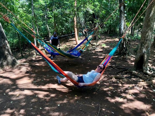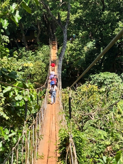 Waiting to cross the 185 ft. suspension bridge