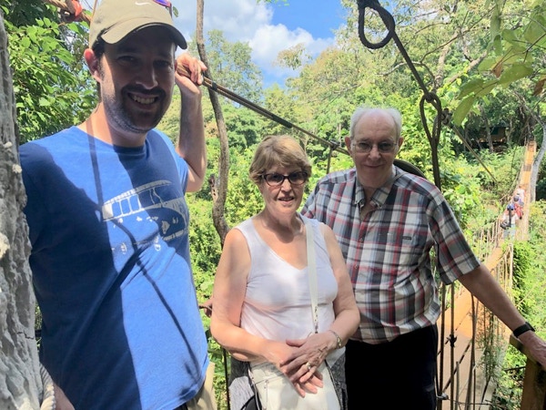 Anne, boys and Chris crossing the suspension bridge