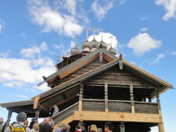 Barbara was a little under the weather yesterday, but feels better today. Maybe we should start drinking vodka shots when we get home. Today we are traveling north on Lake Onega, the second largest lake in Europe. We will travel about 100 miles to the island of Kizhi, which is about 310 miles from the Arctic Circle. The location is 35° E and 62° N. The trip will take us 6 hours from the south end of the lake to the north and another 6 hours back to the south. This morning we had an interesting tour of the bridge. It’s the only day we could have a tour, as the ship is on auto-pilot on this large lake. There are more than 1,300 islands on Lake Onega. Our destination was the small island of Kizhi, which currently has 60 residents, mostly retired folks. The island is famous for its open-air architectural museum, which contains several examples of 18th century wooden structures. The Church of the Transfiguration was built in 1714. It is being renovated and we could not go inside. It was built without using a single nail (the shingles were attached by nails, however) and has 22 onion domes made of timber. The Church of the Intercession was built in 1764 and is considered the winter church, as it is heated. It was open to us and we saw icons dating to the time the church was built. We also visited Oshevneva house, built in 1876. It is typical of the homes of the time and was often multi-family. This site on Kizhi island is a UNESCO World Heritage Site and was luckily not destroyed by the communists. We did a ship’s quiz today and didn’t do too badly--we think we got 24 of 28 right. It wasn’t easy, but one couple had a perfect score. The questions were all multiple choice, but one question was Putin’s age, another about our guide Valera’s metric shoe size and two questions involved writing “please” and “thank you” in Cyrillic letters. We had a Russian language lesson today but it’s pretty hopeless. We haven’t gotten beyond nyet (no), da (yes), dobroe utro (good morning) and spasiba (thank you). The Cyrillic alphabet is very difficult. We had a very pleasant dinner with a Dutch couple who now live in England.