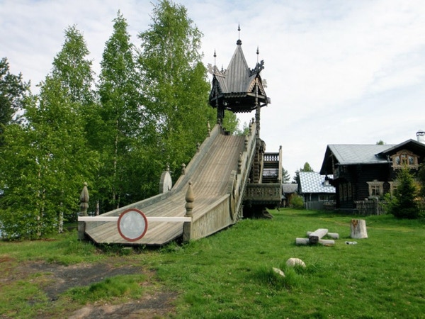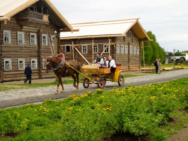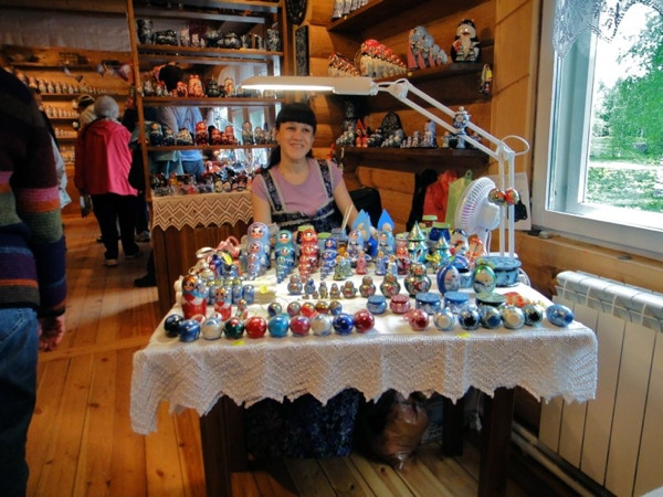 The ship docked in Mandrogy about 9:30 in the morning. The town is located on the River Svir, which connects Lake Onega with Lake Lagoda. Many of the souvenirs that are sold in Russia are made in this small village with its cobbled streets. About 29 homesteads located here were burned down in WWII. When the buildings were rebuilt, starting in 1996, they were made to look like fairy tale structures. There was no organized tour today--we were on our own to see the people making the various crafts and to shop for souvenirs. We bought Matryoshka dolls, a tiny bird of happiness and small birch box made by the people who sold them to us. We also bought several small bottles of Russian vodka at the Vodka Museum. About 150 people live in Mandrogy permanently and 200 people work here every day. We went back to the ship for lunch on the Sun Deck, which was “A Taste of Russia.” The food was good; we had some beer, lunch meats, marinated chicken legs, meats baked in dough (one looked like pigs in blankets) and sweet desserts. Around 1:30 we passed through the last lock of the trip. The River Svir will take us into Lake Lagoda, which is the largest lake in Europe at nearly 7,000 square miles. While crossing the lake this afternoon we attended our last lecture. Zhenja talked about Putin and Medvedev. We had time for a nap after that and at 7:00 we went to the Captain’s dinner where we toasted all the crew and guides. Our dinner companions were from Hudson WI, and their daughter may have gone to Stillwater HS with our daughter-in-law Sarah. Small world. The passenger talent show was at 10:00 and the funniest act was an economist who told some good jokes.