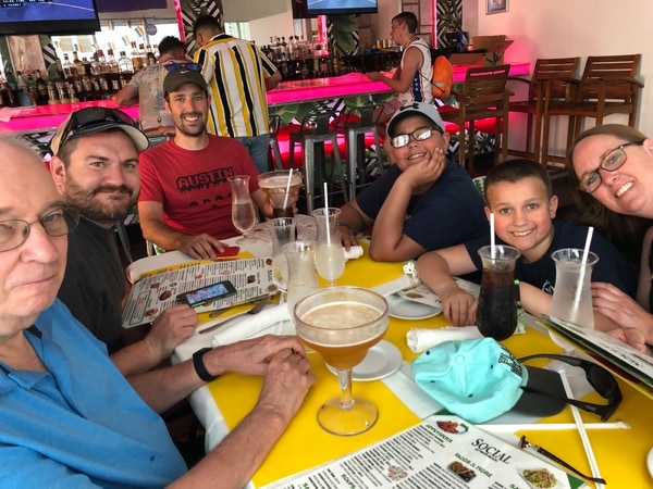 Around 8:00 we left our cabins to disembark the ship. It was pretty amazing that we were outside and calling for a Lyft pickup at 8:15. They used facial recognition so we didn’t need to use our passports. Anne booked us rooms at a Holiday Inn with beach access. We arrived about 9:00 and it was great that they gave us temporary keys so we could use the pool and get to the beach, which was a short walk on the boardwalk. The boys enjoyed the pool and also took a dip in the ocean. Our rooms were ready early, about 11:00, and we decided to take a Lyft to South Beach (Jeff had already walked there) to see some of the Pride parade. We were at the end of the route and the crowds were large and loud. It seemed a little bigger than Minneapolis’ Pride parade but was very similar. The boys were hungry before long and none of us had cell coverage to find a restaurant because of the crowd size. We stopped in one called the Social along the route. The food and service weren’t very good and three of us ordered a beer thinking we’d get a bottle but got a huge margarita glass that probably held at least 2 bottles. From there everyone but Jeff and Barbara went to get a Lyft back to the hotel. Barbara walked back with Jeff as he said it was about 2 miles. It was actually about 3.25 and hot—each time Barbara asked ‘how much farther’ Jeff told her 1/2 mile. She survived and was glad she didn’t have to walk any more that day to get her miles in. B & J took a nap and the others spent time out by the pool or at the beach. About 6:30 Anne called and asked if we were ready for dinner. We were and walked to the nearby Fontainebleau where there were several restaurants. We went to Vida, which had sushi as well as burgers, salads, etc. The food and service were much better than the Social and the prices the same or maybe cheaper. The boys got a gelato to eat on the walk back to the hotel. It was about 9:00 by the time we got back so we did some reading before turning in. Most of us had been in Miami before but just in and out of the airport. It was interesting to see South Beach but it's too pretentious for our tastes. Lots of expensive yachts and cars everywhere.