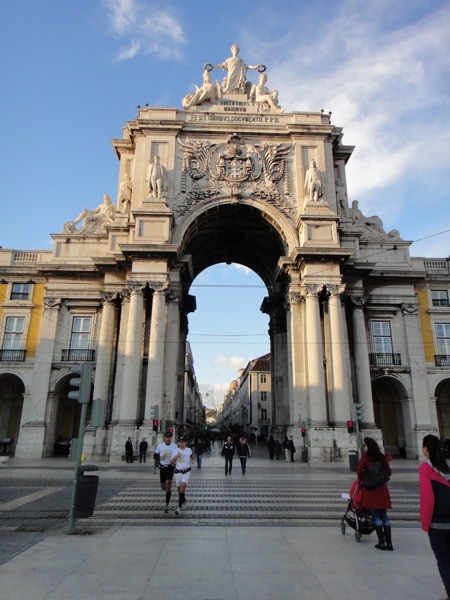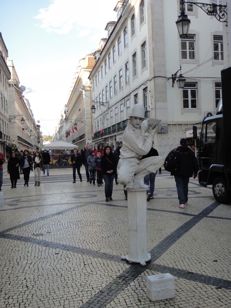 November 17, 2012 — The ms Maasdam arrived in Lisbon about noon on Saturday, November 17th. The four of us went ashore and climbed some steep hills to reach the National Pantheon. We went inside and saw a tomb that may or may not contain the remains of Vasco da Gama. The skies were partly cloudy, and it rained while we were in a cab. We spent some time at a Starbucks catching up with emails, then had an interesting walk along one of the main streets that ends at an impressive arch along the Tagus River where the port is located. Although Portugal has a lower unemployment rate (15%) than Spain (25%), Lisbon doesn't look as well-kept and clean as the ports in Spain we visited.