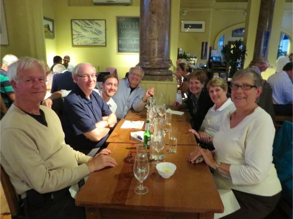 Dinner at Loch Fyne (the seventh head is our waiter)