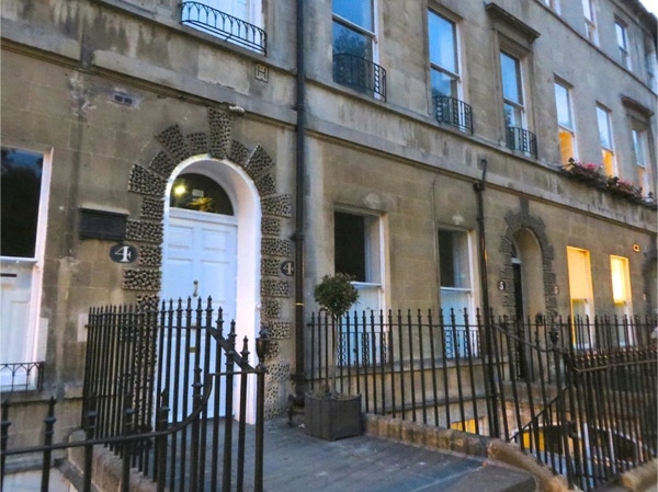 Today after breakfast all 6 of us walked to the Abbey Hotel to go on a Mad Max tour of Stonehenge, Avebury, Lacock and another visit to Castle Combe, which was our favorite of the Cotswold villages. We left right on schedule today, and it took about 1 hour to drive from Bath to Stonehenge. Kevin, our guide and driver, told us President Obama had just been to Stonehenge a week ago and that it made things a little crazy. We walked to the new Visitor’s Center, where we caught a bus that took us to the site. Kevin gave us audio guides so we could walk around the monument at our own pace. Building of the monument started about 5,000 years ago, and although they don’t know exactly what it means, they have some theories. One is that it was a calendar of sorts—they do know that it has astronomical meaning. The first stones came from Wales, but later some came from closer sites. They don’t know what religion was involved, but do know that the Druids didn’t built it, even though they hold festivals here now. A henge is a ditch and a bank, and they were made using antlers and other sharp objects as tools. The largest stones weigh about 30 tons, the smallest about 3 tons, and the ones at Stonehenge have been shaped. The remains of about 64 people were found in the Aubrey Holes, and there are also burial grounds in the area. We walked around for about an hour and then went back to the Visitor’s Center for some souvenirs. Jay and Barbara had the “deluxe’ hot chocolate—it was sinfully good with marshmallows and lots of whipped cream. On the way to Avebury, Kevin stopped so we could get photos of a chalk horse in the hillside, and we fed apples to some real horses here. There is chalk under the topsoil in this area, and there are a number of horses on hills. Avery is a nice town with some thatched roof cottages. There are also about 100 large stones next to the town (there were 400 originally) and here you can walk right up and touch them. They don’t have as many visitors as Stonehenge, which gets about 1 million a year, and there you have to stay on a walkway behind ropes to prevent damage to the soil. Kevin says thatched roofs cost between £600 and £800/sq. meter and that they can last up to 35 years. We stopped for lunch in the Red Lion Inn in Lacock. Jay and Barbara had wine and shared a cheese plate. We walked around Lacock with Kevin and he showed us where scenes from Pride and Prejudice (the Colin Firth version) and Harry Potter and the Sorcerer’s Stone were filmed. The house in the Harry Potter film was where James and Lily were supposed to have lived. Many buildings in Lacock dated to the 14th century, and there were stocks behind the George Inn. From Lacock we went back to Castle Combe, where we were 2 days ago on our Lion’s Tour. We just walked around by ourselves this time and enjoyed the atmosphere. The roofs of the homes in the Cotswolds are made of Cotswold stone. The buildings were built between the 15th and 17th centuries. We returned to Bath around 5:30 and went right to the Loch Fyne, a Scottish restaurant pretty close to Henrietta House. The front desk person made a reservation for Gayle, and the food was very good. Most of us had fish and some of us had great Dauphinoise potatoes. After dinner everyone went back to the hotel, but Barbara and Jay walked a few blocks to take pictures of Jane Austen’s home. It was too dark to get good pictures of the gardens across the street where she spent a lot of time.