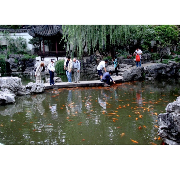 On Monday, September 29th, we started the morning with a buffet breakfast at the hotel and then went to visit Old Shanghai. Today is the start of a seven day National Holiday for the Chinese, so the city is very crowded. Shanghai, which means “out to the sea” has a population of about 17 million and is the largest city in China if you only count the city proper. The highest building is 108 stories tall, just a few more than the Sears Tower in Chicago. It won’t be the tallest building in the world for long, but currently holds the title. Shanghai is a cosmopolitan, bustling city and the crowds on the sidewalks can be overwhelming. Old Shanghai had many old buildings and shops, but also several Starbucks and a Dairy Queen. The Yuyuan Gardens are part of the old city. These gardens and residence date from the Ming Dynasty. Chinese gardens do not contain many flowers but must have the four elements important to the Chinese: water, rock, trees and buildings. We took a bus ride back to the Bund to see the Shanghai skyline by day, then drove on for lunch at a restaurant above an embroidery gallery. The art in the gallery is amazing. A hair-thin silk thread can be split into 48 fine threads, and these are used to hide the ends and joints. You can view the front and back of some of the finished embroideries. The prices start at about $1,000. One picture can take many months to complete and they are all gorgeous. We got back on the bus to go to the Shanghai Museum. It has art dating back thousands of years. Some of us walked back to the hotel where we had a few hours to rest before dinner and the acrobatic show, which is considered the best in China. A wedding and reception was taking place in the restaurant, so we had a taste of the wedding tradition in China. The acrobats were incredible athletes and the show was terrific. Tonight we said goodbye to Terry, David, Paul and Jack, who are flying home on Tuesday. Gayle, Jerry, Lynn, Jim, Barbara and Jay are going on a four-day extension to Hong Kong.