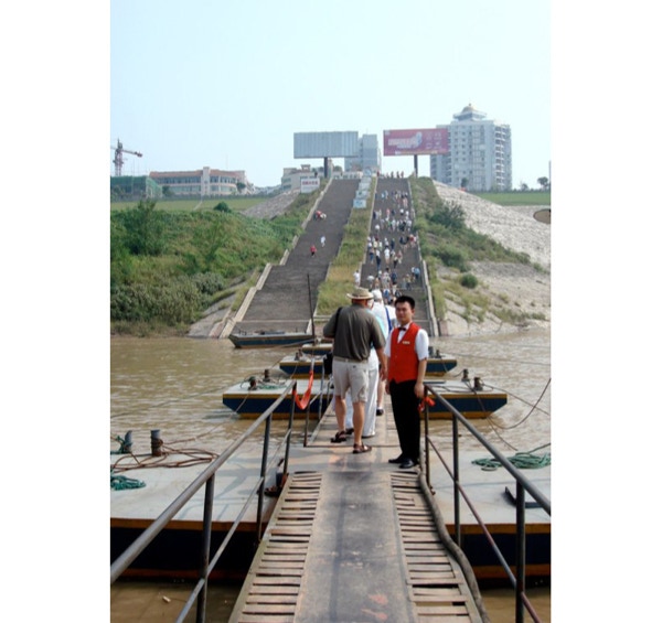 After going through the locks, our ship docked at the small town of Sandouping. At 9:00 am we disembarked for our tour of the Three Gorges Dam. The air was sauna-like and visibility was very poor. We had a good view of the locks but couldn’t see much of the dam. It is the world’s largest dam at 1.3 miles long. The project was begun in 1993 and will be completed in 2012. The project has five goals: flood control, power generation, improved river navigation, aid to the fishing industry and lastly, tourism. The negative aspects are the loss of landscape, the loss of rare river species and water quality. The Yangtze is a very dirty river. The last phase of the project, the ship elevator, will be able to lift or lower ships that weigh less than 3,000 tons. The ship lift will take about 45 minutes instead of the hours it takes to go through the locks. The total cost of the dam is 200 billion rmb or $30 billion U.S. After the tour we returned to the ship for lunch and then had a free afternoon and evening. Gayle and Jerry attended the second Chinese lesson, while the rest of us have thrown in the towel. There was also a vegetable carving demonstration and a documentary film on Mao. Dinner was Western-style and not nearly as good as the Chinese dinner the night before. The bridge players have been finding time for some cards most days on the cruise.