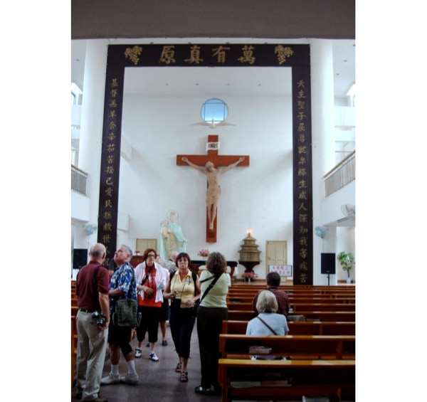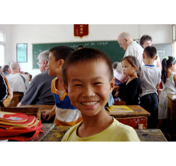 This morning we visited a typical Chinese school in Jingzhou that is sponsored by Viking River Cruises. The town was very depressing, but visiting the school, about a 40 minute bus drive away, was an incredible experience. There were about 700 students in the school and they greeted us as very special visitors, singing and dancing and inviting us on stage to dance with them to “If You’re Happy and You Know It.” They sang it in English, but their version is a little different than ours. We visited a 4th grade classroom and had a chance to meet and talk to some of the dear children. Although they start studying English in the 3rd grade, verbal communication was difficult. They are very well-behaved, but Yang told us that at home they are quite spoiled. With the one child per couple rule, most children live with parents and two sets of grandparents who do everything for the child. We saw a Catholic church in Jingzhou, the first Christian church we have seen so far in China. On the inside it looked just like many Catholic churches in the U.S.. While we were having our shore excursion in Jinzhou, Jay was having his own adventure. He was feeling under the weather, so he didn’t go to the school. He was told there was an internet cafe just ten minutes from the ship, and as the computers on the ship rarely make connections, he decided to go out to send the email about our “back-blog” to all of you. The people at the front desk on the ship gave him directions and written Chinese characters to show to people to help him find his way there and back. He didn’t find it walking, so took a cab and finally found a different cafe. On the way back, the first cab driver drove for a while and then decided he didn’t know where Jay wanted to go so he was let out on the street corner. Jay wandered the streets and back alleys for a while heading more or less in the direction of the ship. He found another cab and was able to point where the driver should go to get to the ship. The three cab rides cost a total of about $1 U.S. After lunch on board the ship some of us attended a lecture on China today, a demonstration on making dumplings and lessons on playing MahJong. During the lecture on China, the program director shared his life story of growing up in China. Earlier on the bus ride back from the school, our guide Yang also told us about his life during Chairman Mao’s Cultural Revolution, which lasted from 1966 to 1976. Life was extremely difficult, and most people did not have enough food. Earlier, from 1959 to 1961, about 40 million Chinese people died in the Three Year Famine that was caused by a drought. What a contrast to all the food available on this cruise.