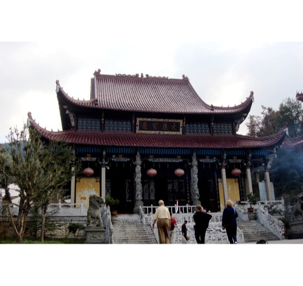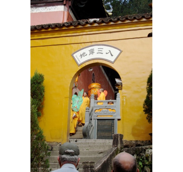 Today we had a free morning, so most of us watched the first Obama/McCain debate which was televised at 9:00 am local time. We are 11 hours ahead of Minneapolis time. The ship is docked in the city of Chizhoa, and after lunch we boarded a bus for a one hour drive to one of China’s four sacred mountains, Mt. Jiuhua. The road up the mountain supposedly has 99 curves, and they have mirrors on the curves so drivers can see around the corners. Yang talked about religion in China on the way up. Only 10% of the population practices a religion, and of those 80% are Buddhists. There are 86 temples on the mountain with about 700 monks and nuns. We visited two Buddhist temples. We saw the monks in red and yellow robes and pilgrims in black robes processing into the older temple where they chanted during a ceremony. Photos weren’t allowed inside this temple. After walking around on the lower level, Barbara, Jay and Jack rode a funicular higher up the mountain. The views were very nice, with clouds hovering around the nearby mountains. We also saw a sitting mummy that is about 500 years old. The mummy had been gilded a gold color, so we didn’t recognize it as a mummy until a Viking guide confirmed it. Tonight was the Captain’s Dinner and he came to our table to greet us. He didn’t speak English, and the Program Director translated when Paul thanked him for keeping the ship in the middle of the river. The captain got a big kick out of it. Dinner tonight was a delicious Chinese meal. With the cruise portion of the trip over, we said our goodbyes to our wonderful wait staff. We cruised 1,200 miles of the Yangtze River and were impressed with Viking River Cruises. The service was better than we’ve had on any ocean cruise and overall it was a great experience. Tomorrow morning we disembark the ship and take a bus to Shanghai. Thanks to all of you who have left comments on the blog or emailed us. It’s great to hear from home. The ship provided us with a little newspaper daily and televised CNN International, but the Twins fans among us wish we had more news than just yesterday’s scores.